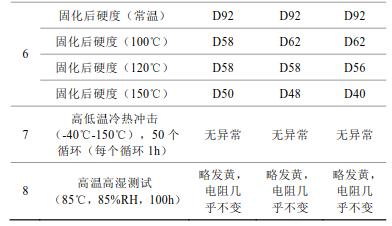 2)球磨35h制得的片狀銀粉制得的導電銀膠,銀膠的粘度、觸變指數(shù)、推力測試、導電性能、點膠、固化后硬度測試、高低溫冷熱沖擊測試及高溫高濕測試均滿足應(yīng)用。