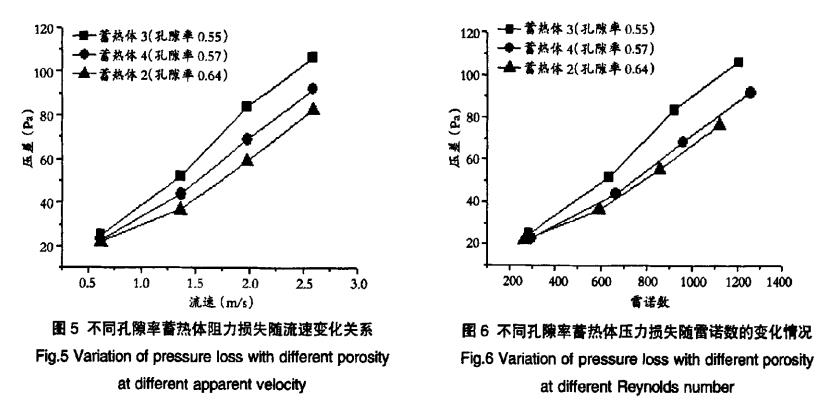 (2)蓄熱體阻力損失隨孔隙率增加而減小。在蓄熱體孔隙率—定時,蓄熱體阻力損失隨雷諾數增加而。